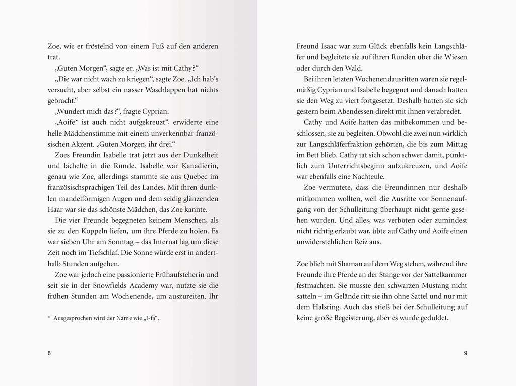 Zoe's new classmate Mika is a mystery to everyone. She doesn't let anyone get close and goes silent when asked about her past. When Tamino, a valuable young horse, disappears from the stables one night, she immediately becomes one of the suspects. But Zoe wants to give her a chance and soon finds out that Mika is not the only one in Snowfields who has something to hide.