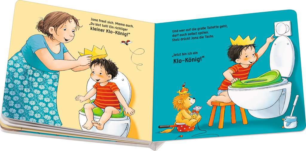 Jona receives a gift – it's a potty seat! Naturally, he wants to test it out. But sitting on the toilet by himself is so boring! Luckily, Leo the Lion is with him, and eventually Jona manages to pee. Mom is very proud of her little toilet king.This story straight from everyday life features charming step-by-step pictures about toilet training – the perfect companion to guide very young children through a key milestone in their development.