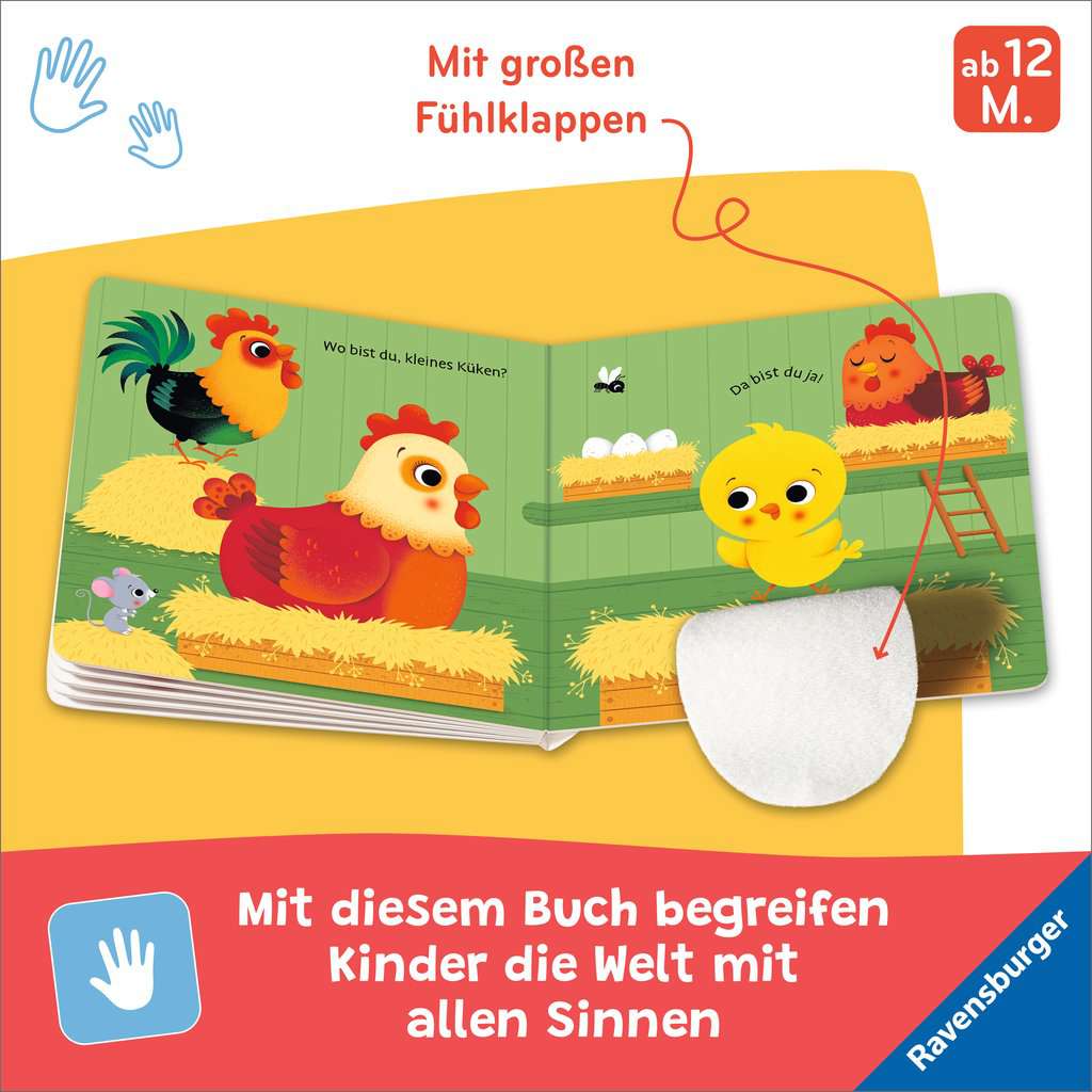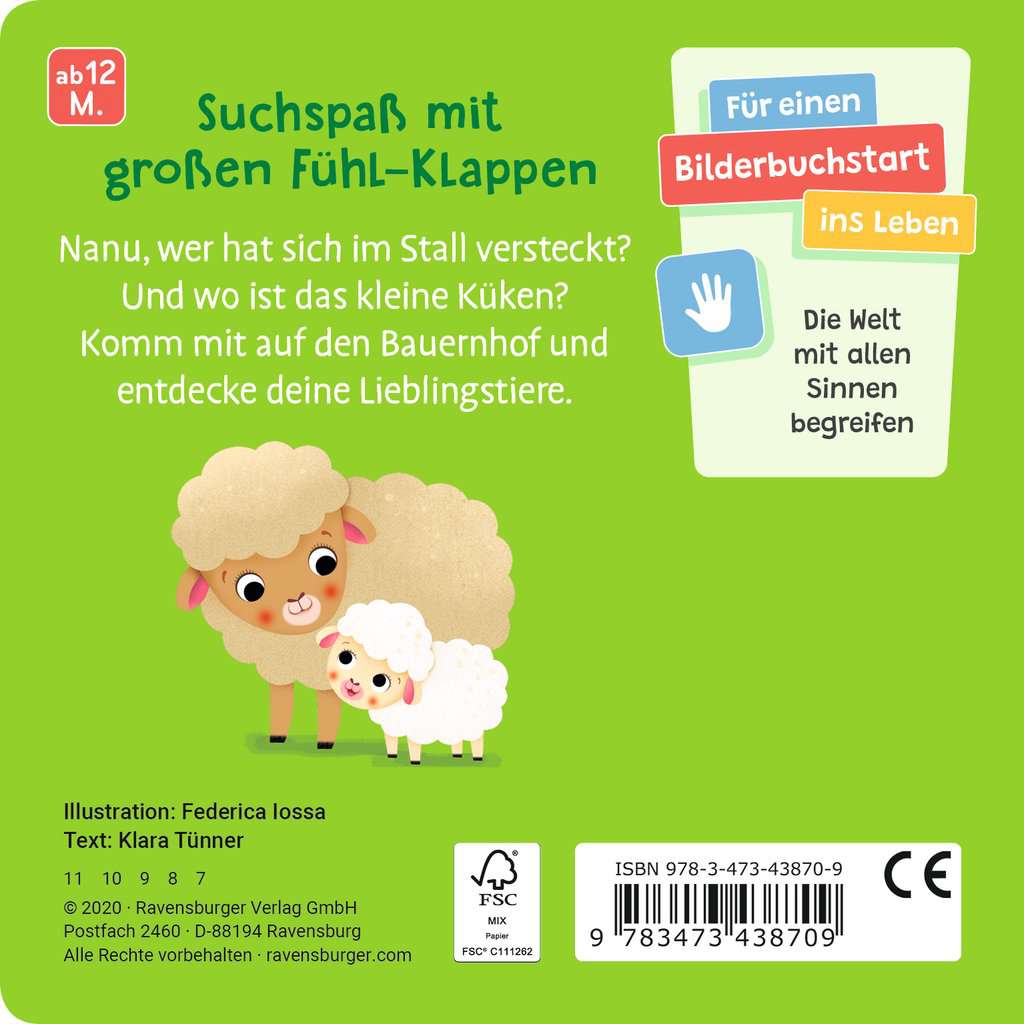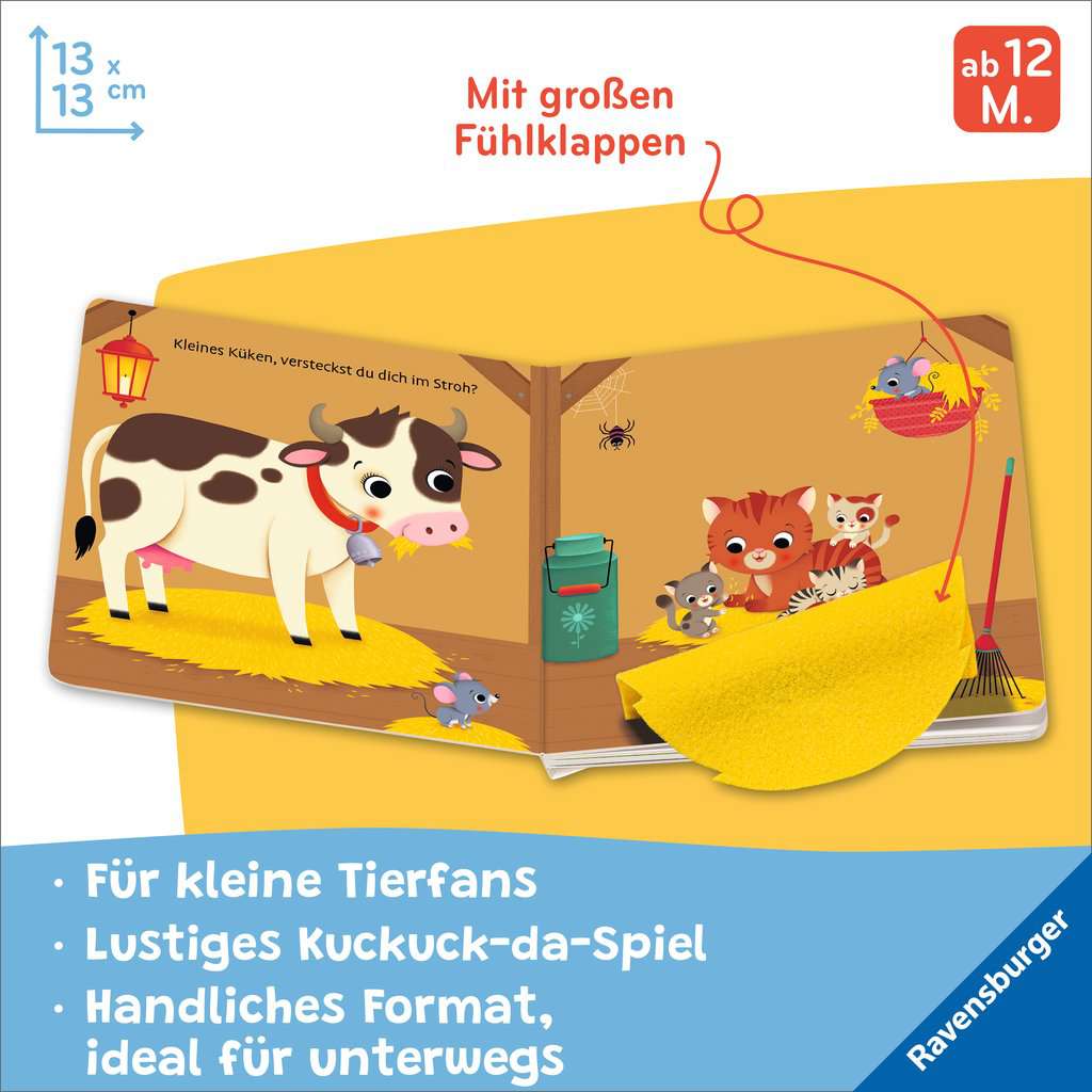 Each of these little books is an entertaining search game for very young children, casually training their fine motor skills and teaching them to recognise and name their favorite animals. Each of the five double pages features a large die-cut flap on the right-hand side, made from a felt-like fabric. Behind these flaps, animals are hiding.