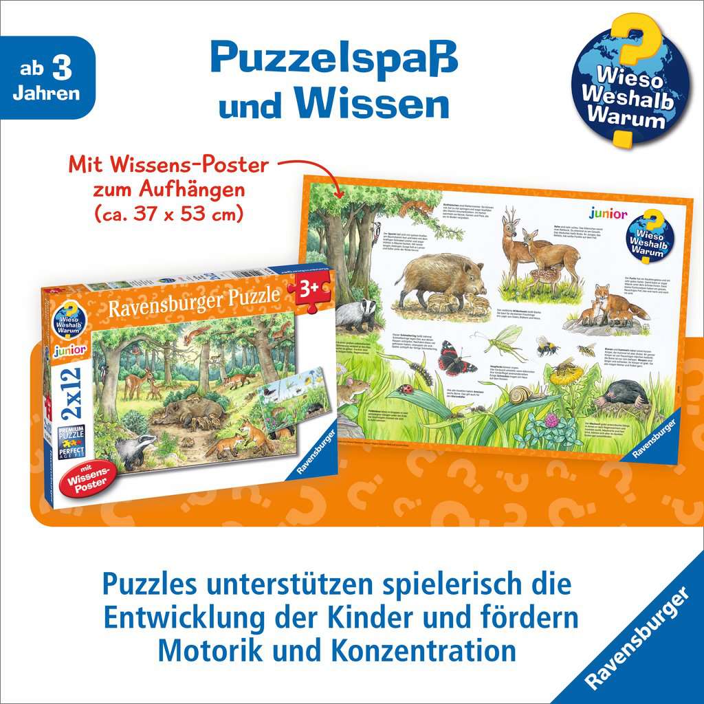 Piece by piece, children discover native animals and their habitats as they do the jigsaw. A beautifully designed knowledge poster delivers fascinating additional information about animals living in forests and meadows.