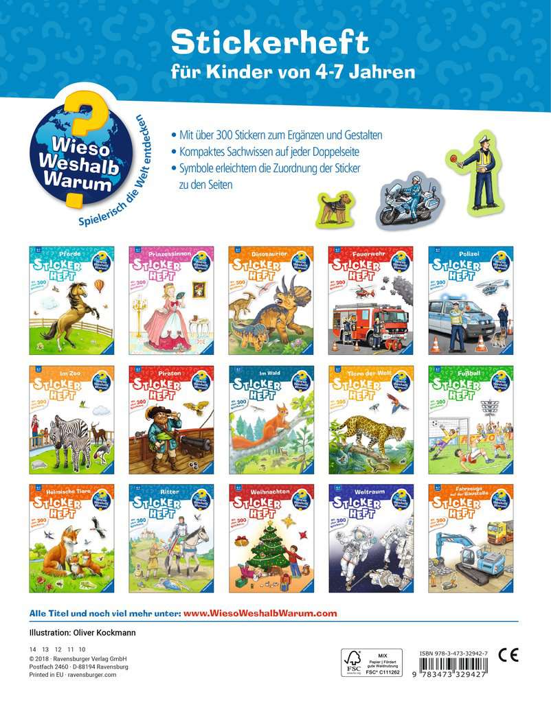 Learning while having fun with stickers is the hallmark of the Why? Why? Why? sticker books. Fully illustrated pages and more than 300 stickers allow for lots of creativity, while symbols and a solution page guide children to deeper knowledge.