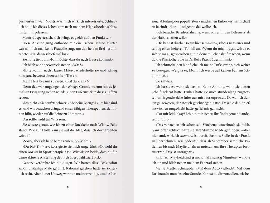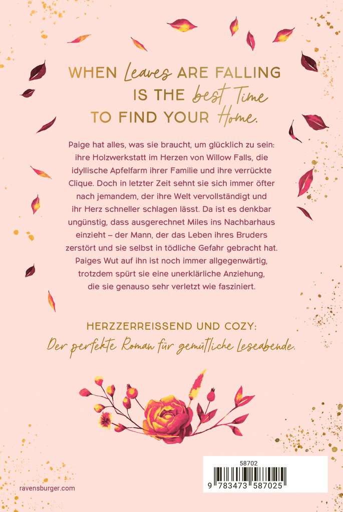 Paige has everything she needs to be happy: her woodworking shop in Willow Falls, her family's apple orchard and her friends. But more and more, she finds herself yearning for someone who will make her heart beat faster. Unfortunately, none other than Miles moves into the house next door – the man who destroyed her brother's life and put Paige herself in mortal danger. Paige's anger towards him is still there, yet she also feels an attraction that hurts and fascinates her in equal measure.