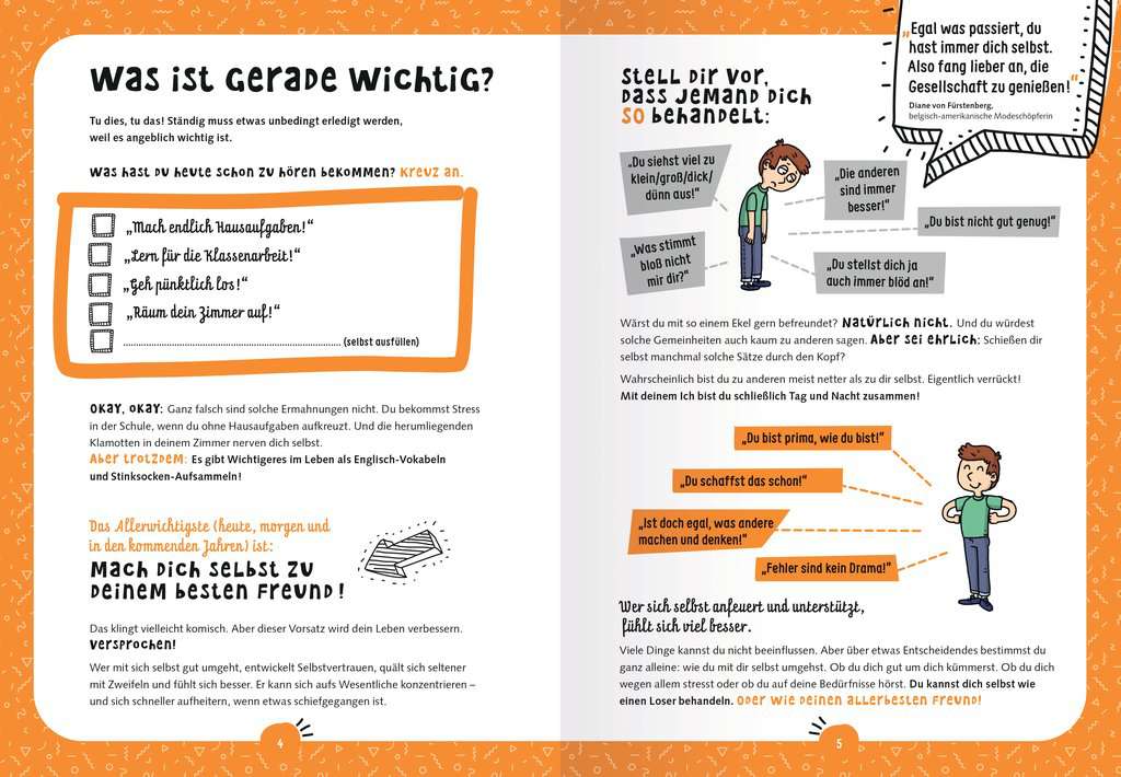 - Checklists, tests and thought experiments invite teenagers to get to know themselves better – and to become their own best friends!