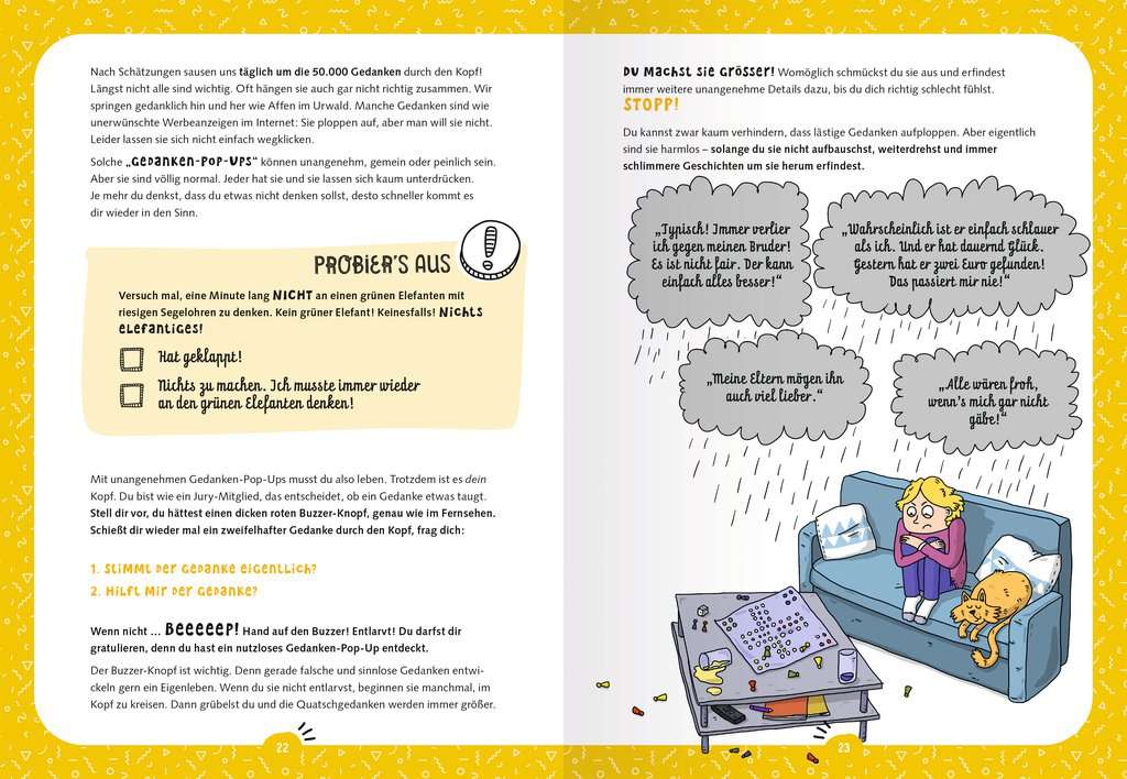 Stressed at school, unhappy with how they look and fed up with their parents – the difficult combination of performance pressure at school and the onset of puberty can be tricky for many teenagers. Is there anything that helps? Maybe it’s this book! It explains to boys and girls how to become more mindful and balanced. How to learn to accept themselves. The texts are informative and entertaining. Many pages feature inspirational quotes or novel activity suggestions: for example, a “griping diet” and a “happiness bingo”; relaxation exercises; many pages to fill in that inspire boys and girls to reflect, or a checklist of digital time-eaters. Readers can even award themselves medals for their positive qualities. After all, this is an activity book as much as an encouragement book. Boys and girls realise: I’m fine the way I am!