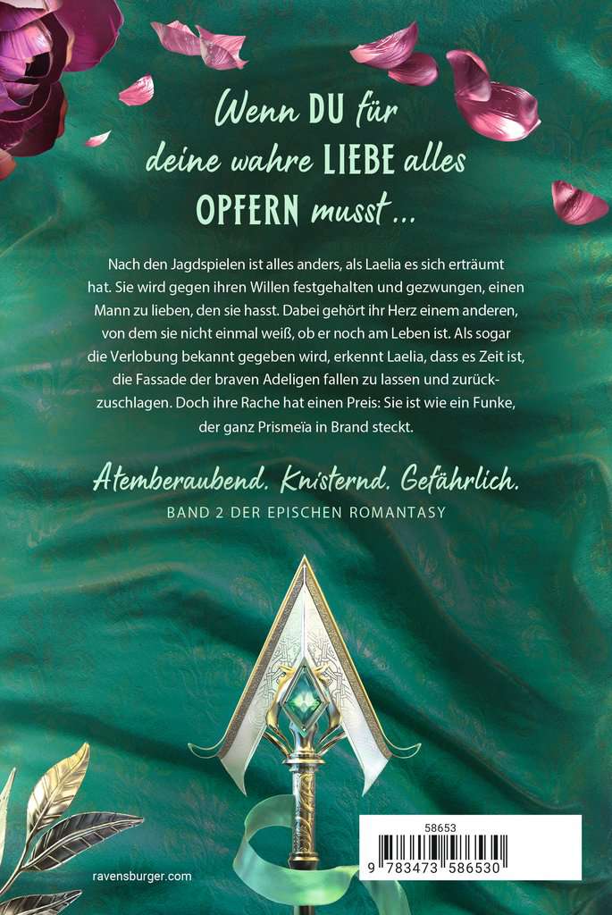 After the Hunting Games, everything is different than Laelia had imagined. She is being held against her will and forced to love a man she hates, even though her heart belongs to another. She doesn't even know whether he is still alive. When their engagement is eventually officially announced, Laelia realizes it's high time to drop the facade of the well-behaved noble. However, her revenge has a price: it is like a spark that sets all of Prismeïa on fire.