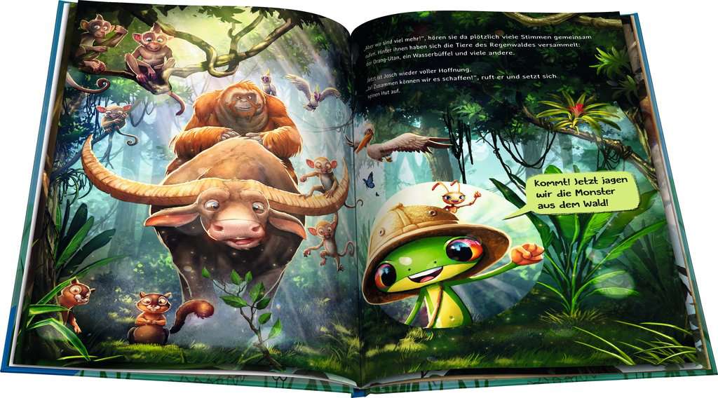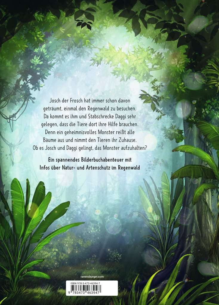 Josch the Fog and his friend Daggi, a stick insect, are called into the rain forest because a mysterious monster is doing terrible things there. It is ripping out all the trees and taking the animals' habitats away. The presumed monster turns out to be a digger, steered by humans, that clears the trees in order to make way for new plantations. Josch and Daggi help the animals defend their home. But then there's a dangerous accident ... This exciting story is complemented by a page with fascinating factual information about the rain forest and the animals who live there. In addition, Daggi the stick insect provides plenty of practical tips on how children can protect nature and the environment at home.