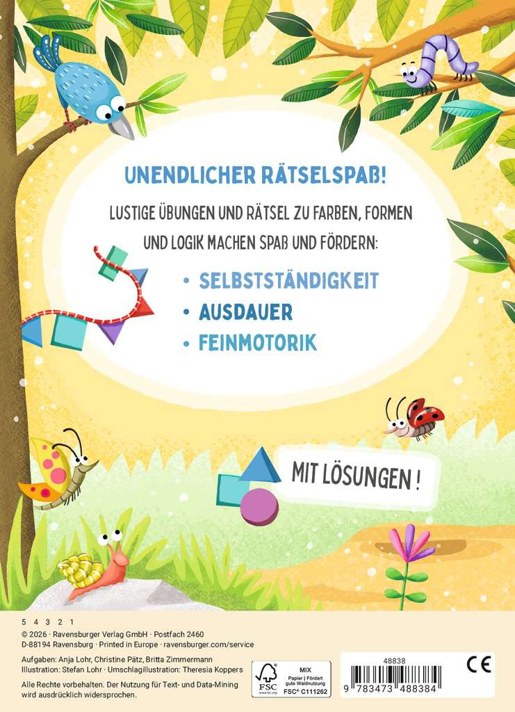 This section contains a variety of logic and concentration exercises. Tasks illustrated in a child-friendly way promote logical thinking, attention, and perseverance in a playful way. Proven puzzle formats such as picture puzzles, mazes, and counting tasks are fun for kids and motivate them again and again.