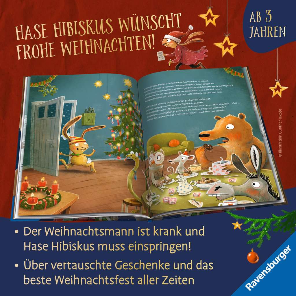 Rabbit Hibiscus is filling in for Santa this year. Buy presents, wrap them, hand them out - that's it. It doesn't actually sound all that difficult. But anyone who knows Rabbit Hibiscus, Maxi Mouse and Tom Bear will have an inkling that nothing will be going as planned, because confusion and chaos are inevitable wherever the three of them turn up. And indeed, it turns out to be quite a special Christmas with rather unusual presents. One thing is clear, though: it's the best Christmas ever!